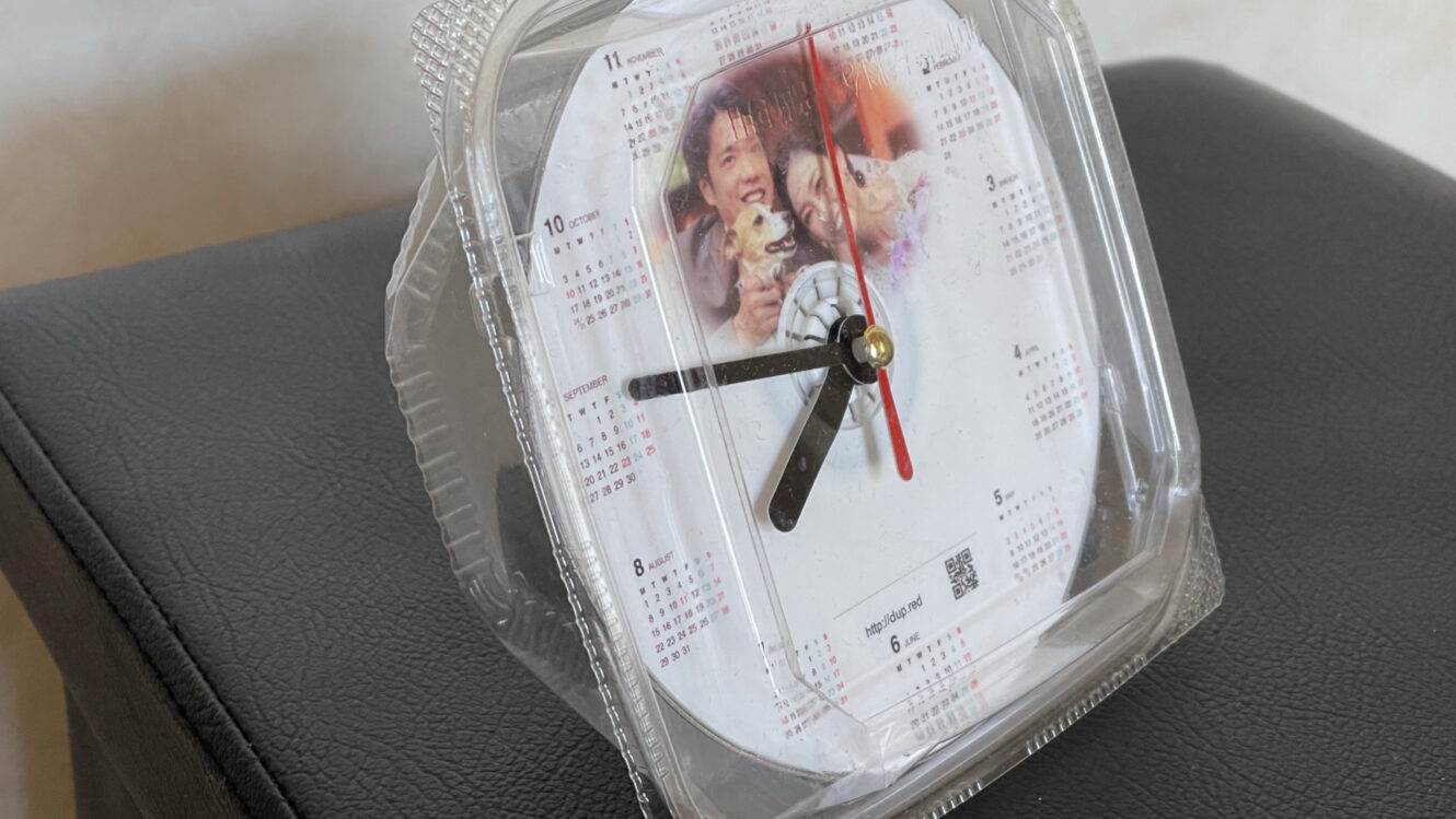 CDケースに時計が設置できるよう加工しています。